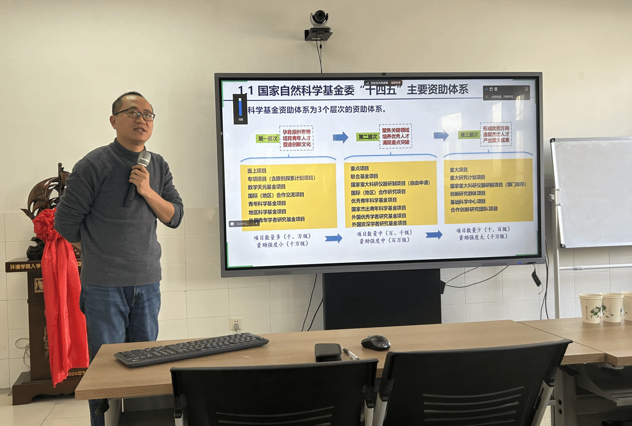 12月13日上午,环境学院2025年国家基金项目申报培训讲座在环工楼712会议室召开。会议邀请到华中科技大学刘正乾教授、环境学院杨生炯教授为青年教师作专题辅导讲座。会议吸引了约40名25年国家基金的申请教师参加,会议由科研副院长文刚主持。