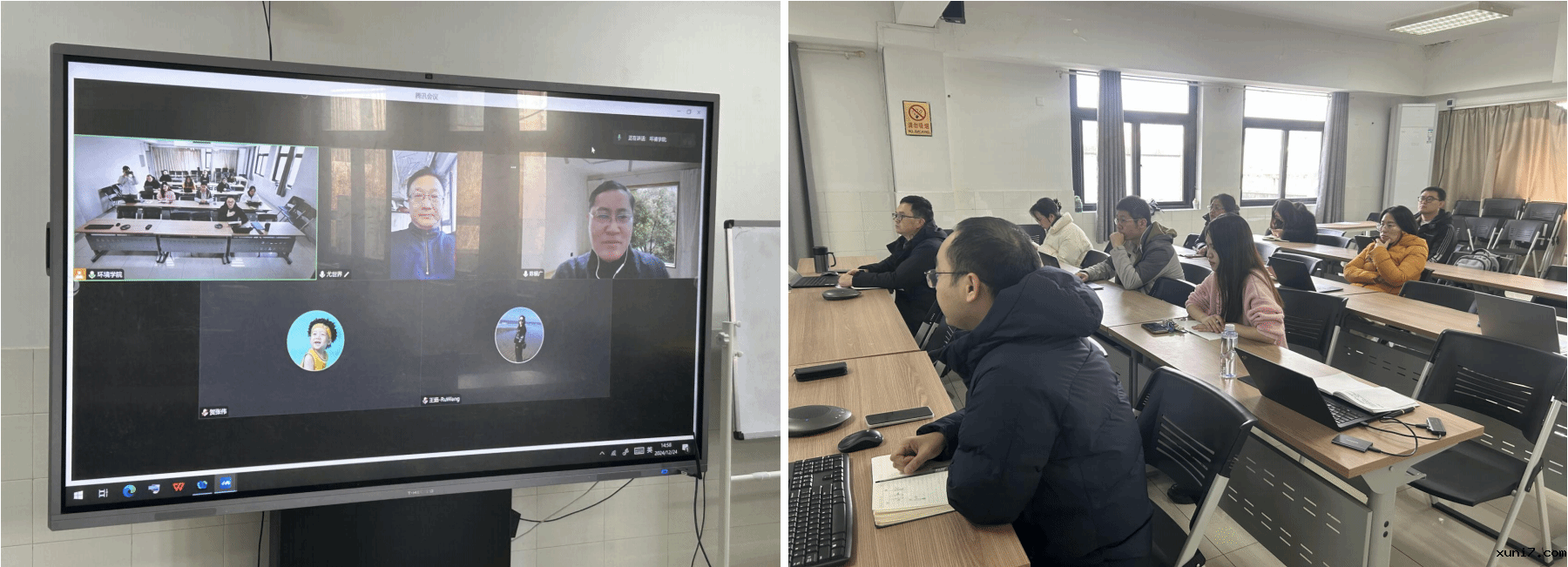 2024 年 12 月 24 日下午,环境学院举办了第五期国家基金质量提升会议,聚焦于工业废水、污水污染控制领域。会议特邀同济大学陈银广、哈尔滨工业大学尤世界两位国家杰青基金获得者作为线上指导专家。环境学院科研副院长文刚主持会议,相关方向青年教师及汇报人员共同参与了本次学习交流。